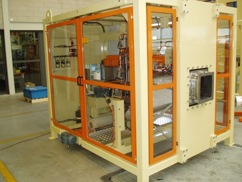 Die Flachfolien-Verpackungsmaschine kann vor einer semi-automatischen Ballenpresse aufgestellt werden. Die semi-automatische Ballenpresse schiebt den Ballen in die Verpackungseinheit, die die Verpackung selbst aus Flachfolie herstellt. Für eine schnelle und einfache Montage ist die Flachfolienmaschine in einen einzigen Rahmen eingebaut. Das Verpacken in Flachfolie anstatt in vorgeformte Säcke spart hohe Folien- und Personalkosten ein. Der Verpackungsprozess wird vollständig automatisiert.