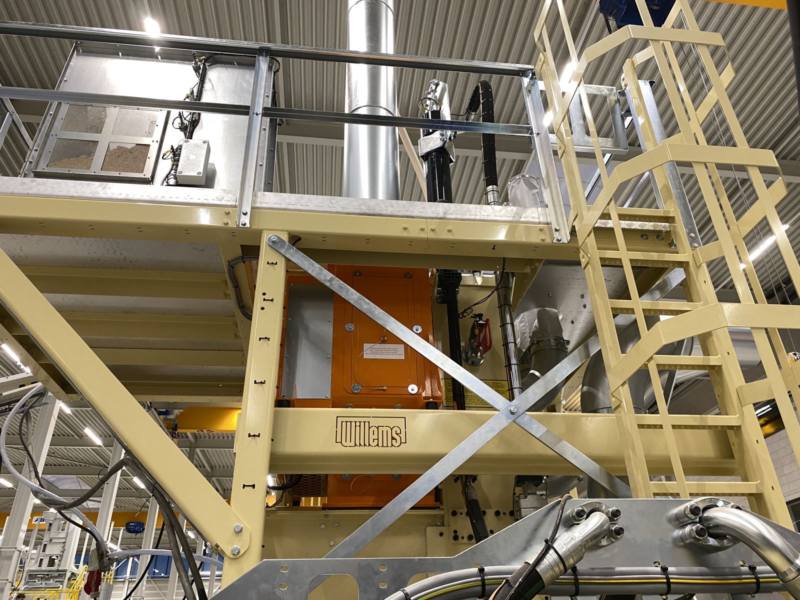 Komplette Verpackungslinie zum Verpacken von Flachs und gemahlenen Flachs. Die Ballenpressen von Willems können verschiedene Ballengrößen mit unterschiedlichen Verdichtungsverhältnissen pressen und verpacken.