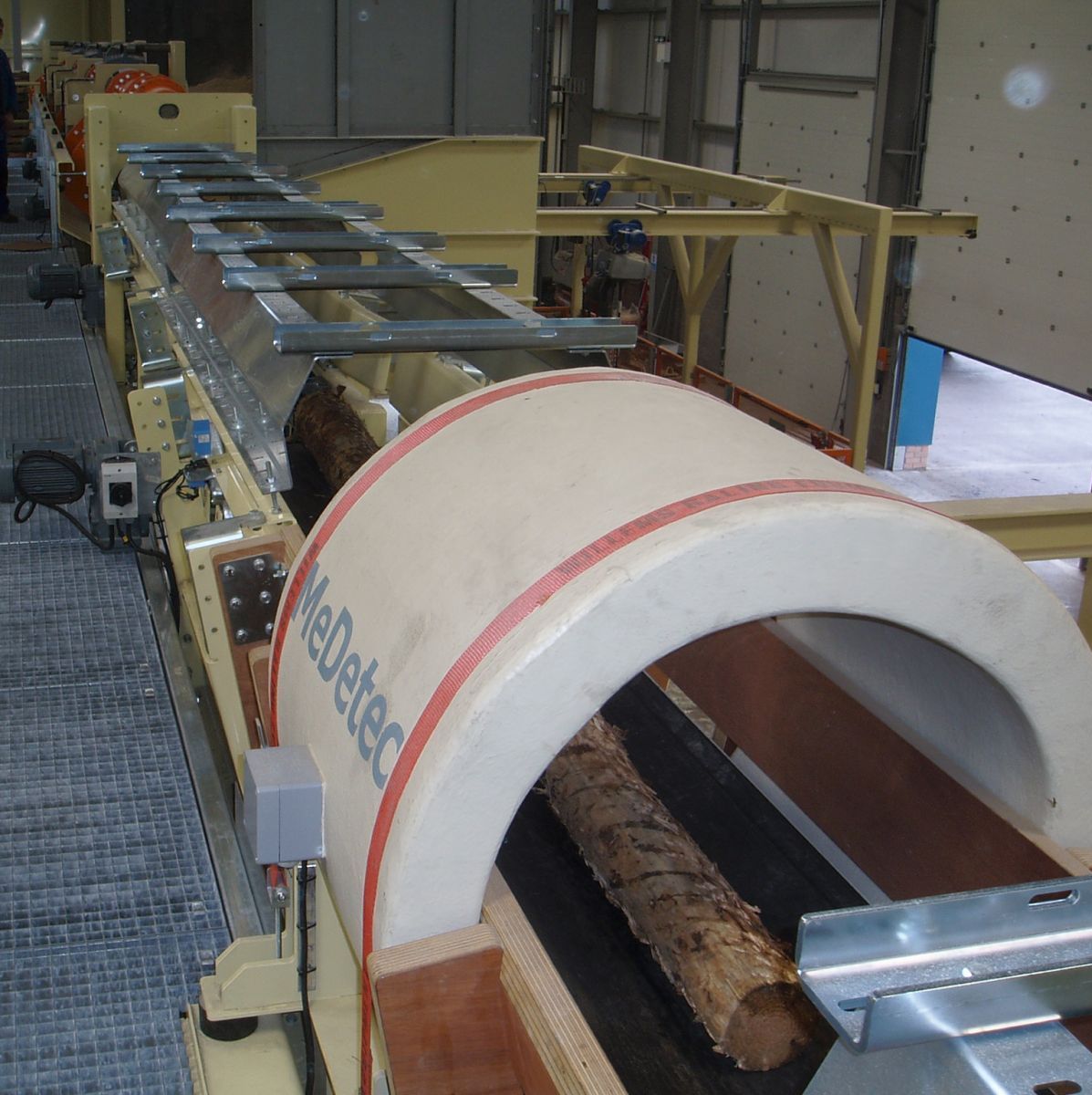 - With a crane logs can be placed on the chain conveyor for buffering and transporting the logs.