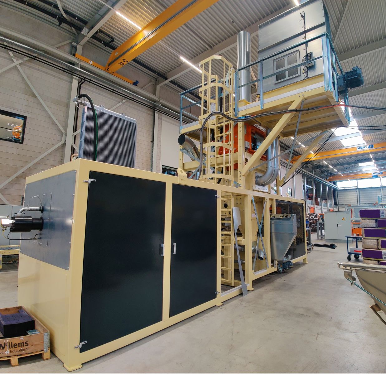 Complete packaging line for compressing and packaging flax. The Willems balers are suitable for making different bale sizes with different compression ratios.