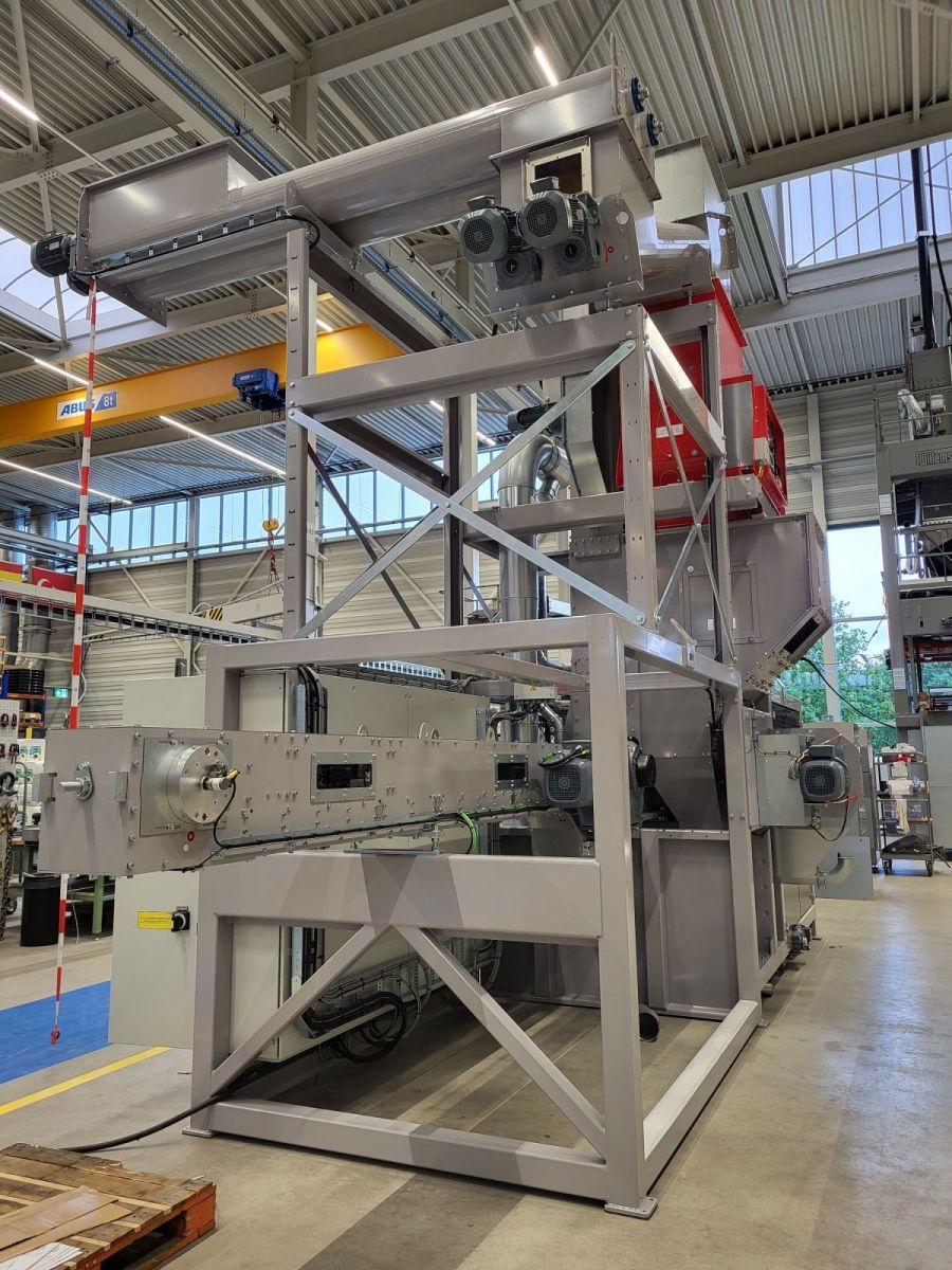 The machine is fully electric! Instead of using hydraulics to compact the product into a bale, this machine is executed with motor driven rams. This has a lot of benefits for the customer. It saves energy costs. As there is no heating up oil. It means lower maintenance costs, as it does not contain oil that needs to be changed or sampled occasionally. The noise level of the machine is much lower compared to conventional hydraulic system. This is an environmentally friendly solution. This fits perfectly to the product that it compacts: an environmentally friendly insulation material.