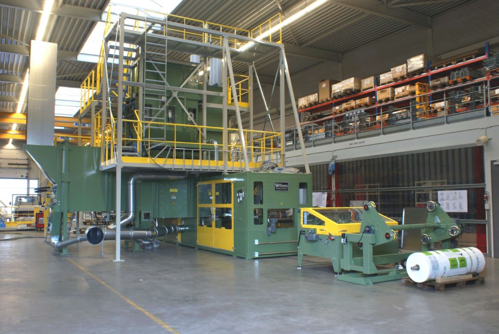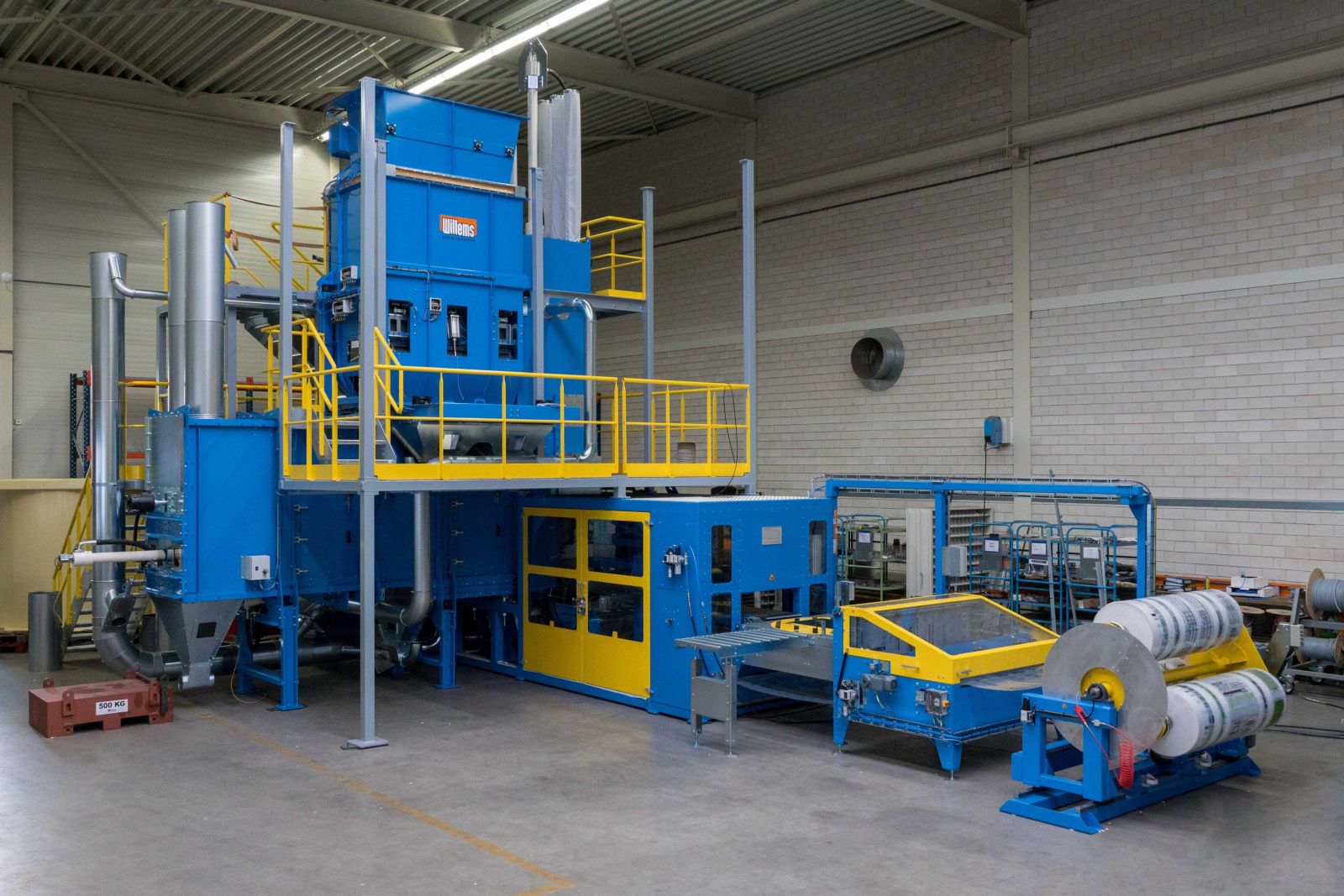 Afin de contrer la consommation toujours croissante de carburant, les bâtiments et les maisons sont de plus en plus isolés. De nombreux matériaux isolants sont faits de laine de verre. La laine de verre est un produit volumineux qui peut rendre le transport très coûteux. Bien emballer la laine de verre de manière compacte est une tâche difficile. La laine de verre ne peut être comprimée que dans une certaine mesure, sinon les fils de verre se brisent et perdent leur valeur isolante. Les presses à balles isolantes (presse à balles HVH) de Willems Baling pressent des balles de 17 kg en une taille de 1000 x 600 x 200 mm. Les balles peuvent être empilées et chargées avec un robot. Un récent projet en France montre bien la machine aux couleurs du client.