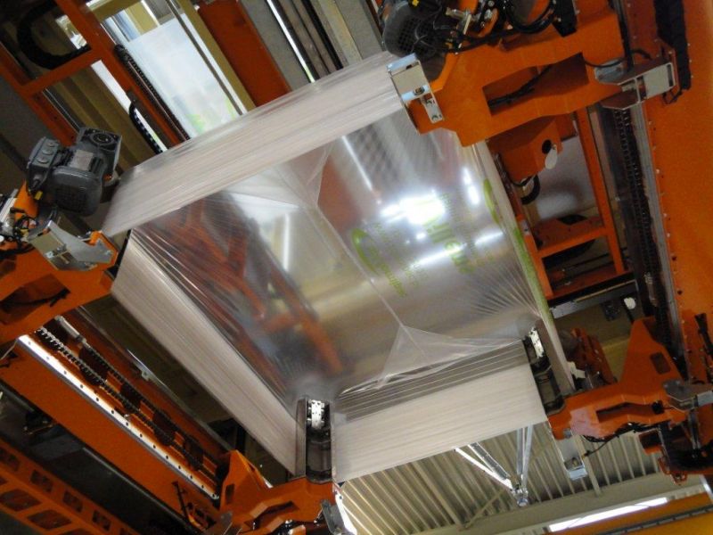 Avec l'aide une housseuse, les produits peuvent être emballés sans humidité et sans saleté. Tant que le contenu reste visible. Les sacs peuvent être empilés sur une palette avec, par exemple, un robot. Le film peut ensuite être tiré sur la palette et son contenu. Convient à de nombreuses applications produits.