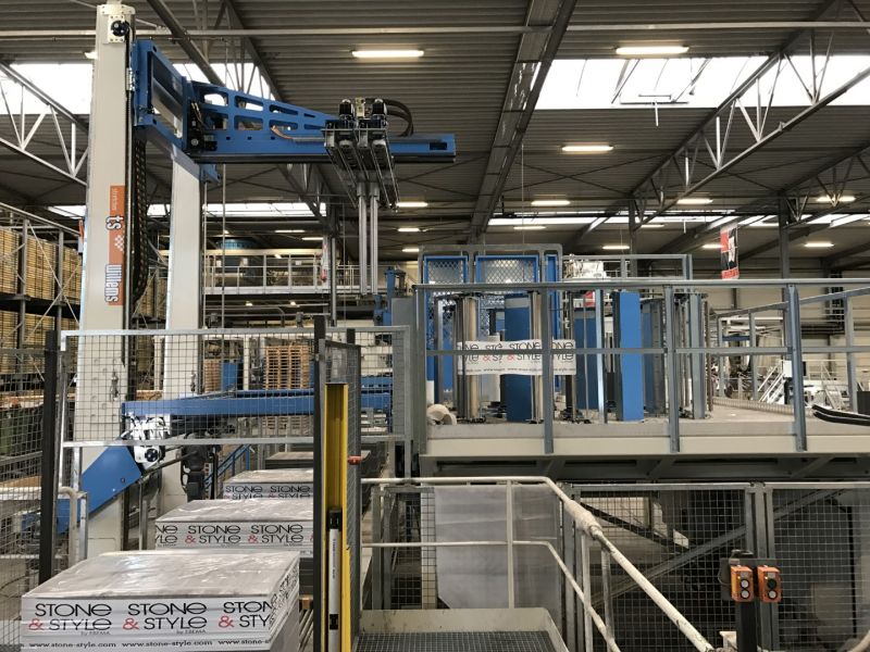 Emballer des pierres sur une palette n'a rien de spécial en soi. Mais c'est le cas si vous devez vous assurer que les pierres sont visibles de l'extérieur. Et c'est difficile lorsque le film est tiré en double couche sur les pierres. Nous avons développé une machine spéciale pour les briqueteries et les fournisseurs qui veulent que leur produit soit visible en un coup d'œil.