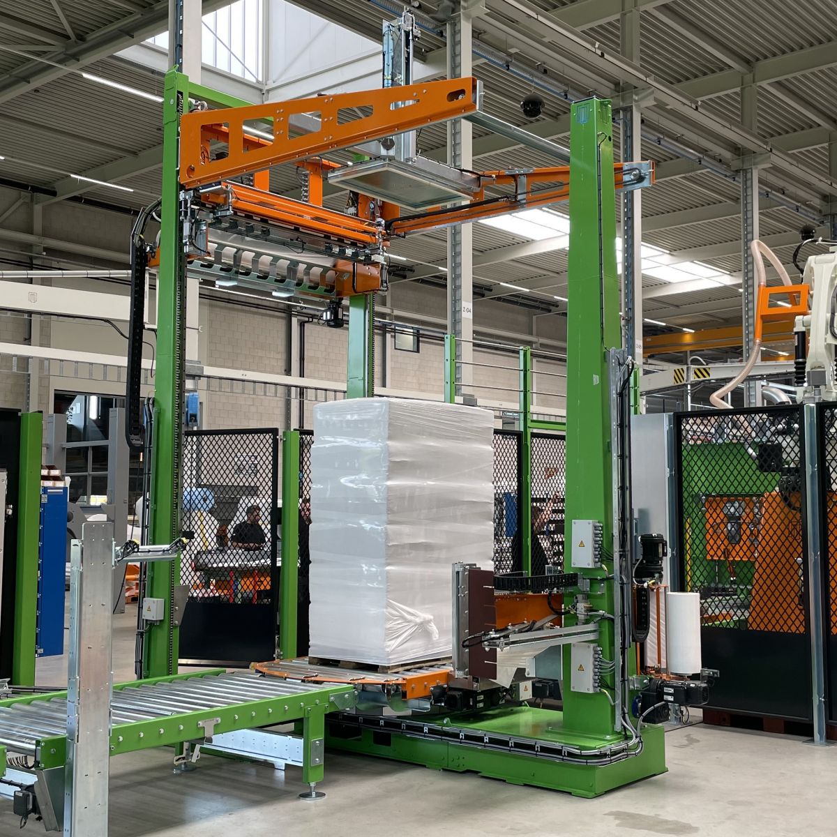 Willems a déjà livré une presse à balles pour le conditionnement et l'empilage de paille hachée. La paille hachée est mise en balles puis empilée automatiquement par un robot. La palette est ensuite enveloppée dans un film étirable, la protégeant ainsi de l'eau de pluie. Grâce à cette ligne entièrement automatisée et simple d'utilisation, un cariste n'a besoin de récupérer les palettes pleines qu'occasionnellement.