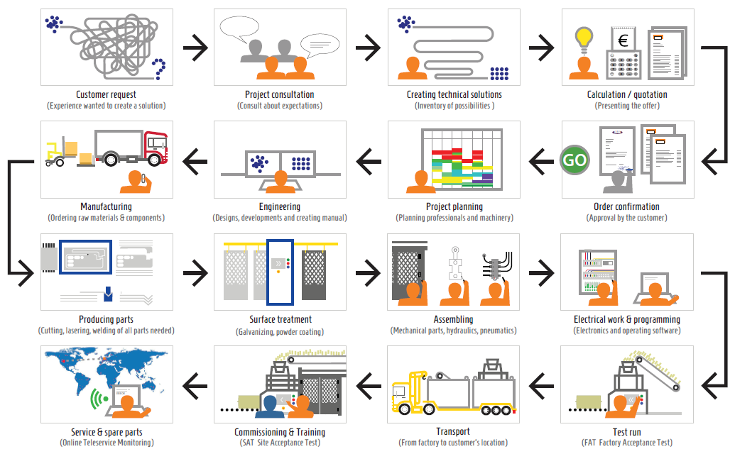 Cela commence toujours par une demande du client pour une solution à un problème. Nous discutons avec le client des attentes qu'il a. Une fois que nous avons bien compris cela, nous commençons à travailler en interne. Nous analysons le problème et travaillons avec une équipe de membres expérimentés pour former des idées, faire des calculs et ensuite faire un devis. Le client veut en effet savoir où nous en sommes.