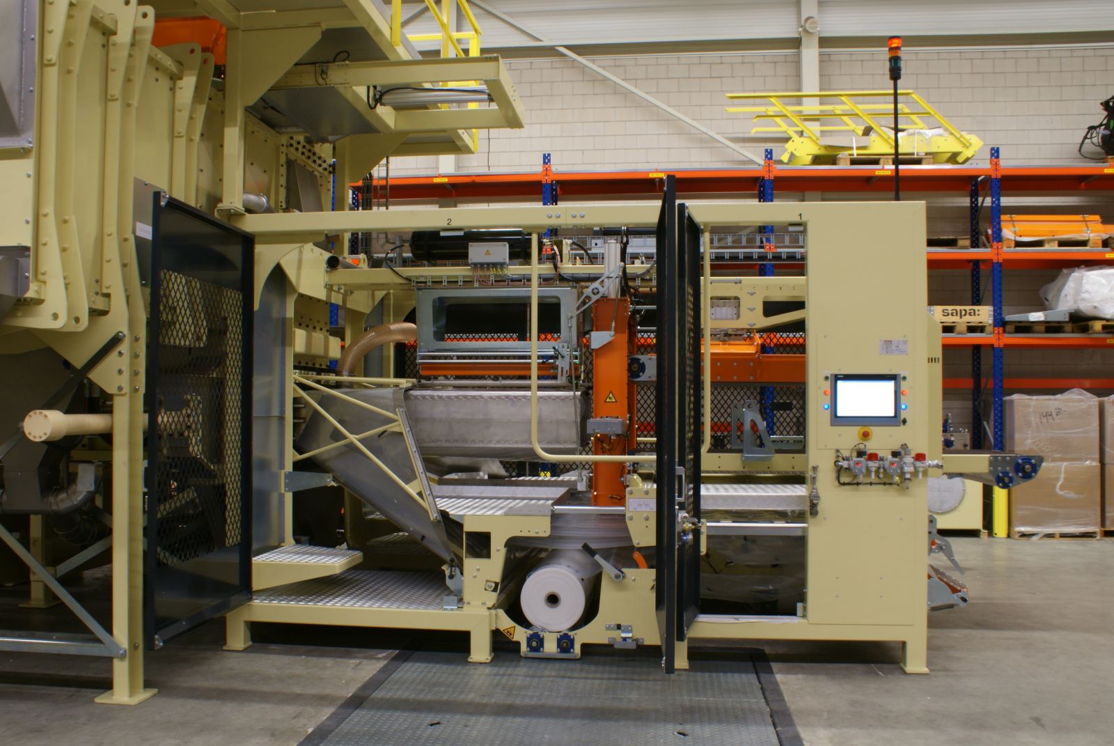 De maxi balenpers perst en verpakt 'maxi bales' (grote balen) tot 300kg. De maxi balenpers is in principe geschikt voor producten met een lage dichtheid, zoals houtkrul, glasvezel en isolatiemateriaal. Maar ook andere producten kunnen hier goed mee geperst en verpakt worden. De maxi baler kan ook uitstekend gecombineerd worden met bijvoorbeeld een aan- en afvoersysteem met reiniger en een robot palletiser. Door inzet van deze machines konden we een reductie van 30% aan transportkosten genereren bij een klant in Frankrijk