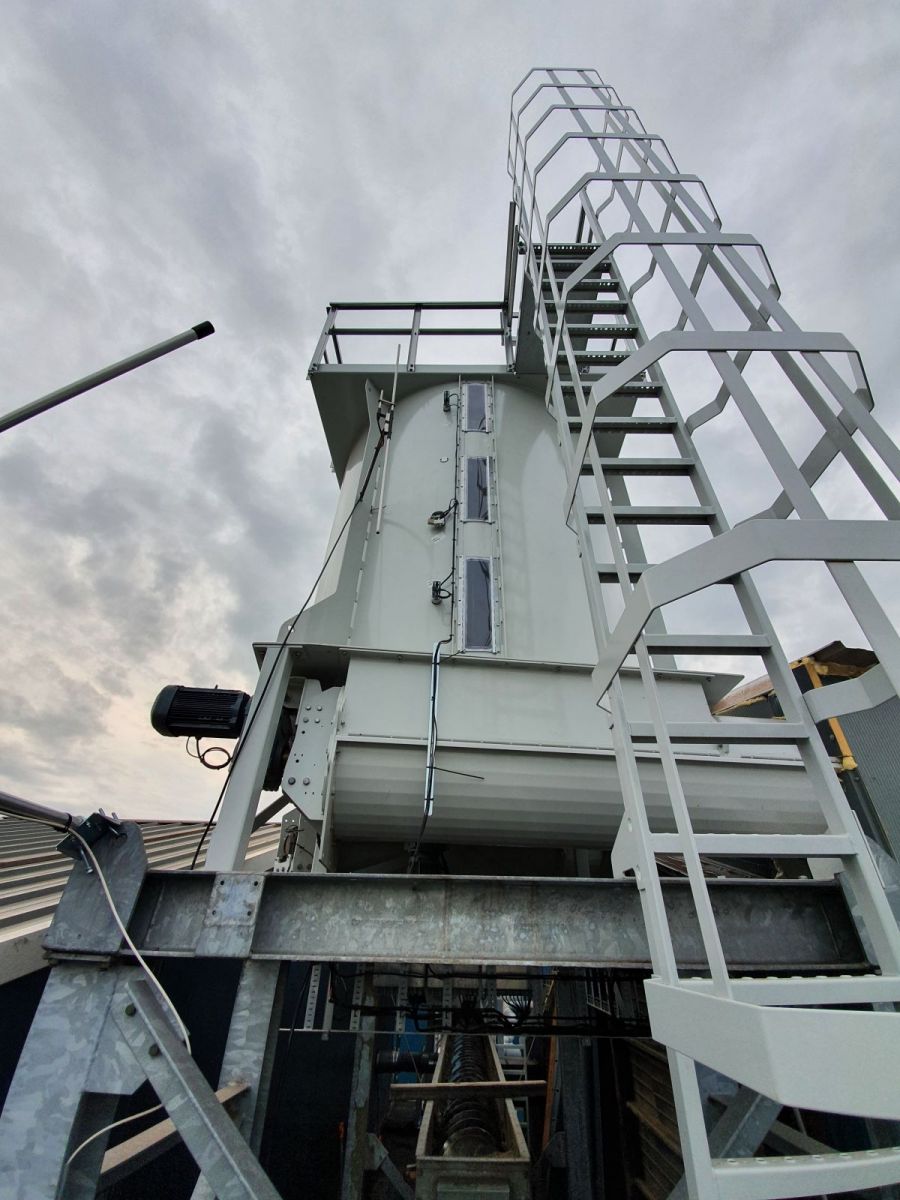 - 3 buffer / aanvoer bunkers, met respectievelijk een inhoud van ca. 900 m3, 80 m3 en 40 m3 aan houtkrullen.